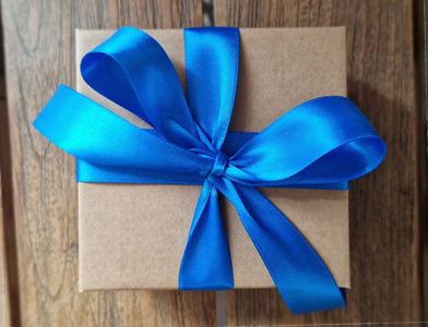 Balit můžeme do papírové kraftové dárkové krabice se saténovou stuhou (červená, modrá, zlatá, žlutá nebo zelená) cena 89 Kč. Výplň dřevitá vlna.