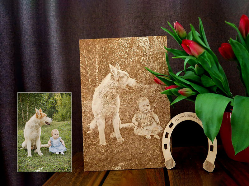 Vaše blízké potěší gravírovaná fotografie nebo hodiny s fotkou, která zahřeje u srdce při každém pohledu. Fotku můžeme vygravírovat i na další předměty, třeba na vnitřní stranu víčka na krabičky srdce na dřevěnou krabičku na kapesníky, nebo na dřevěný pořadač, který vyrobíme na míru