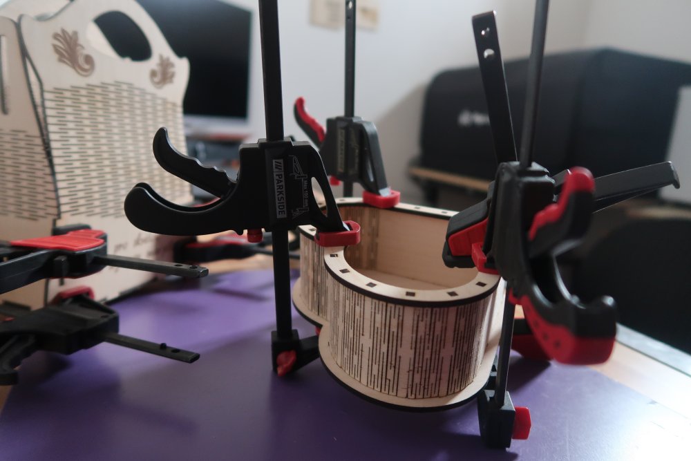 Následuje broušení, lepení, stažení výrobku svěrkami, aby spoje držely opravdu pevně.