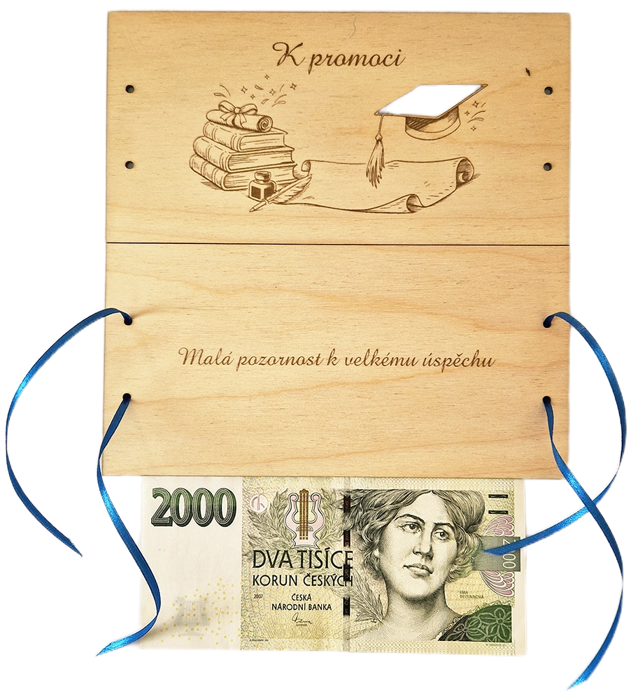 Dřevěné přání na peníze k promoci