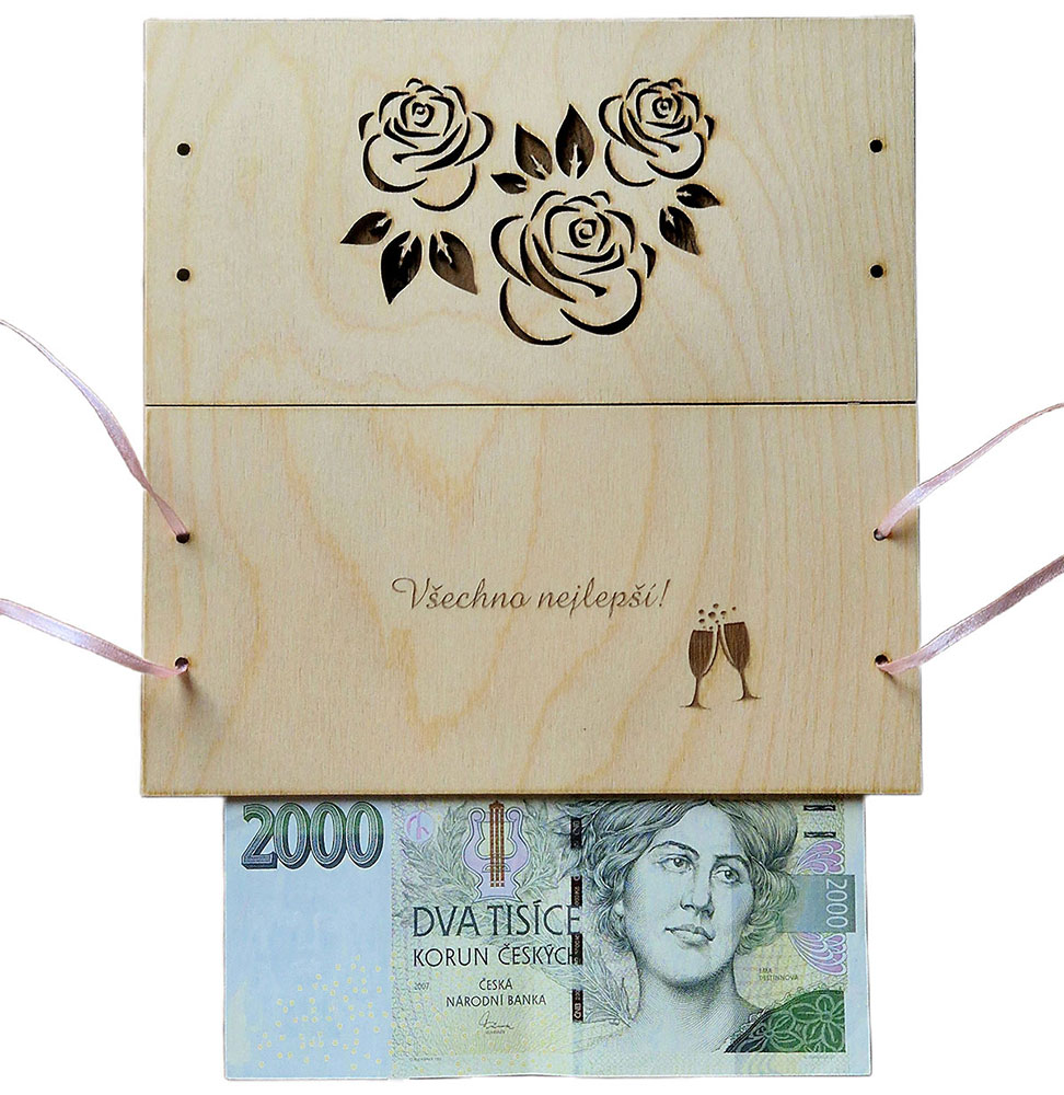 Uvnitř přání (po vyjmutí bankovky) najde obdarovaný gravírovaný text.