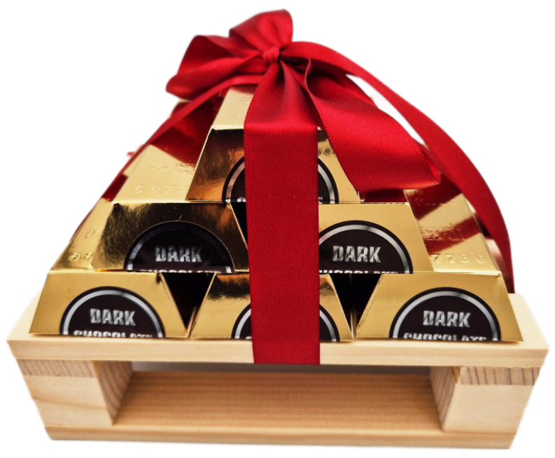 Představte si, že rozbalíte dárek s výbornou kvalitní čokoládou, když odeberete čokoládové cihličky z dřevěné palety, překvapí Vás gravírovaný vzkaz od milované osoby...