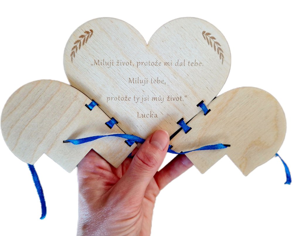 Dřevěné přání ve tvaru srdce je vhodné na jakoukoliv příležitost (třeba k výročí, svatbě, narozeninám, svátku, k Valentýnu nebo jen tak).